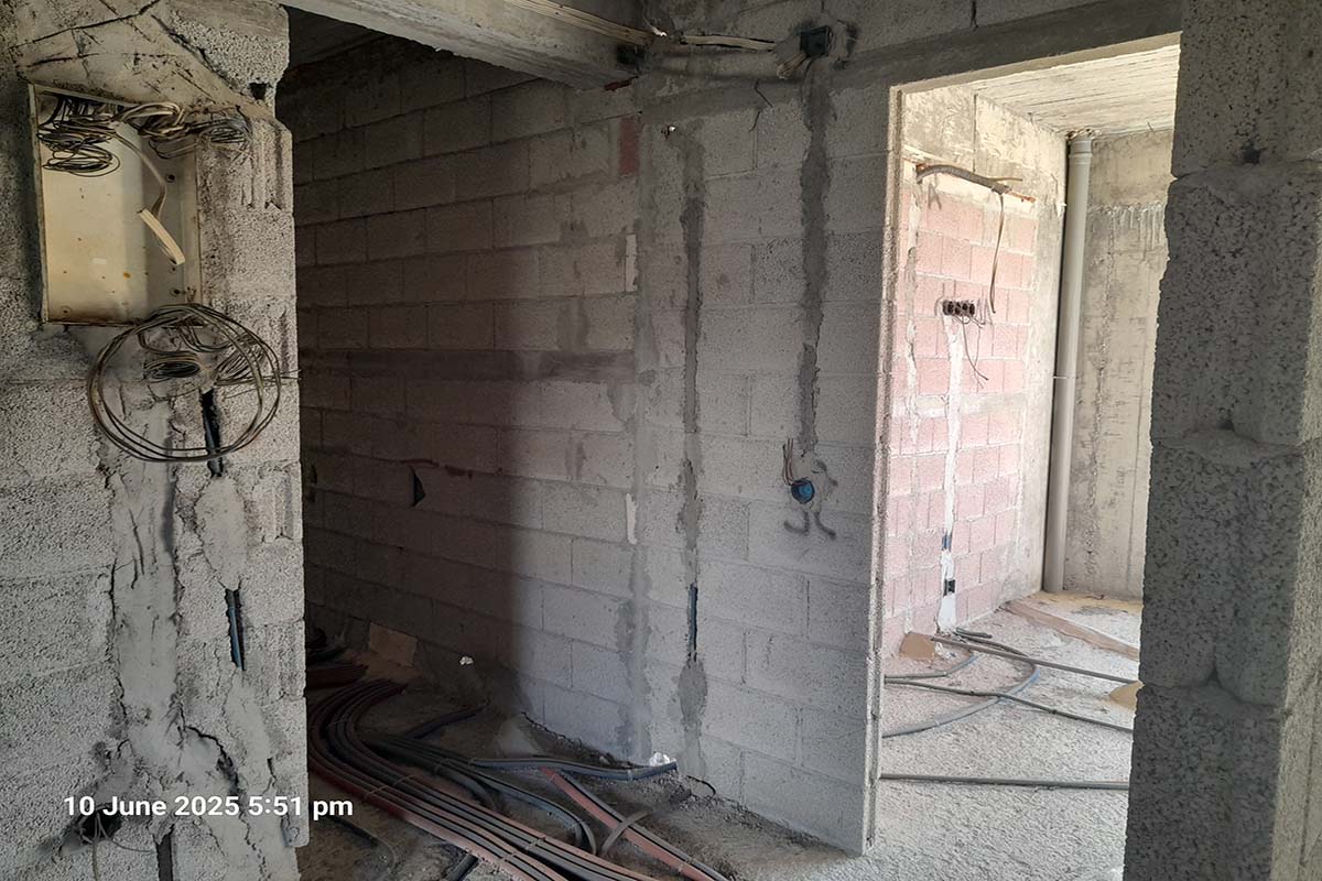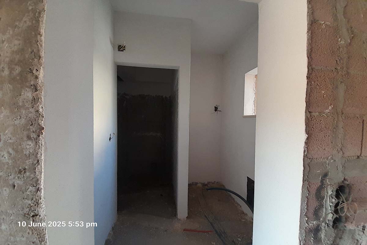 Στον 1ο όροφο βρίσκεται ένα οροφοδιαμέρισμα 135,27μ2 με μεγάλα μπαλκόνια στο στάδιο της τοιχοποιίας επιπλέον έχουν γίνει οι υδραυλικές και οι ηλεκτρολογικές σωληνώσεις. Έχουν διαμορφωθεί τρία υπνοδωμάτια και τρία μπάνια.