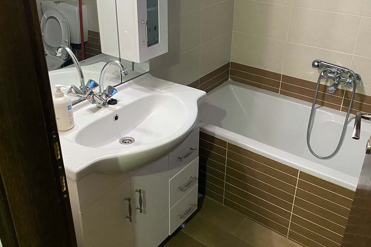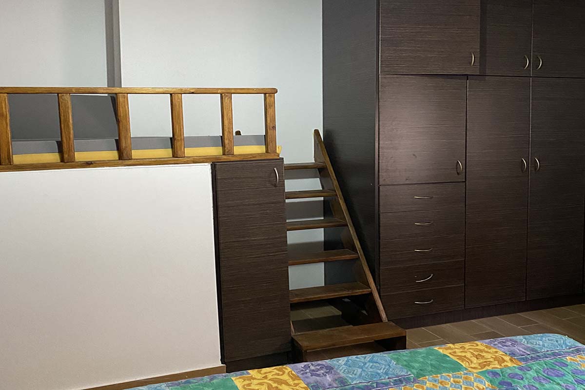 Στον πάνω όροφο η κρεβατοκάμαρα με διπλό κρεβάτι, κουκέτα για τα παιδιά και μεγάλο μπάνιο.