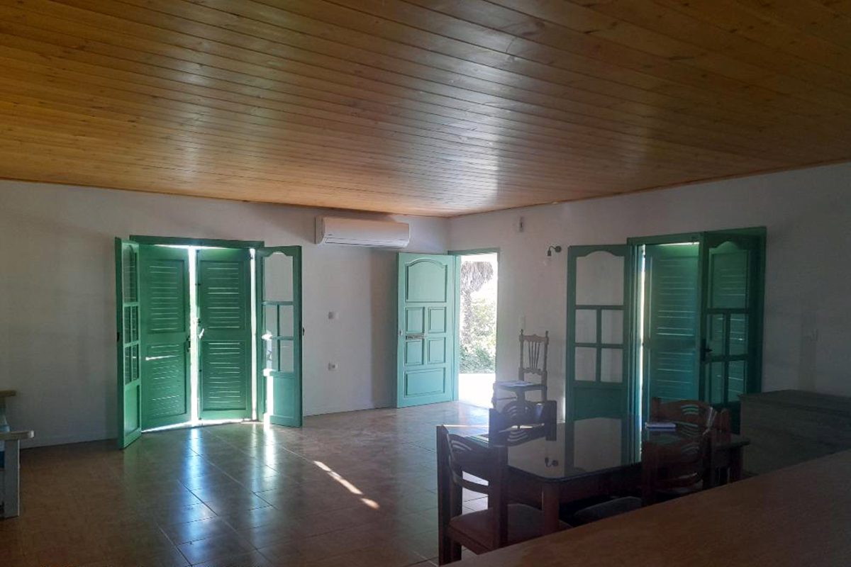 - It is built on a raised concrete base, has large outdoor spaces (courtyards) and is surrounded by a 2,300m2 plot with various fruit trees.